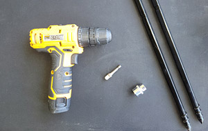 A battery operated drill with attachments facilitate a fast and convenient method of getting the Proper Dropper in the ground (Refer to Method 2 Proper Dropper)