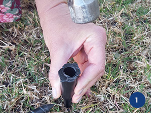 Place the drill with the adaptor directly above the head of the Proper Dropper in the desired spot of signage positioning.